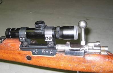 3/8” dovetail side base and a compact shot gun scope on Yugo  M24/47 with straight bolt.